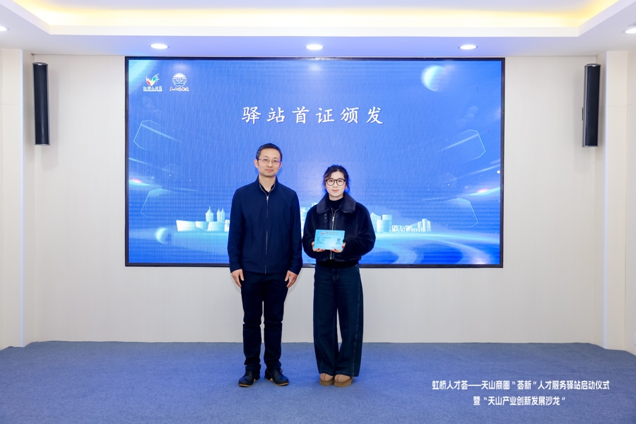 3月20日,位于长宁区天山-虹桥商圈的“虹桥东说念主才荟”——天山商圈“荟新”东说念主才做事驿站珍贵启用,现场举办了“天山产业革命发展沙龙”,并颁出驿站首张《番邦东说念主来华责任许可》,任职于友塔收集科技的外籍职工CHEN SHA FAN成为拿到驿站“首证”的国际东说念主才。