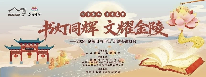 1月21日至25日,以“书灯同辉 文耀金陵”为主题的2026“金陵旧书市集”走进秦淮灯会,将在南京夫子庙打造一个集阅读、观赏、体验、传播于一体的文化盛宴,让书香浸润灯彩,让文脉照亮金陵。