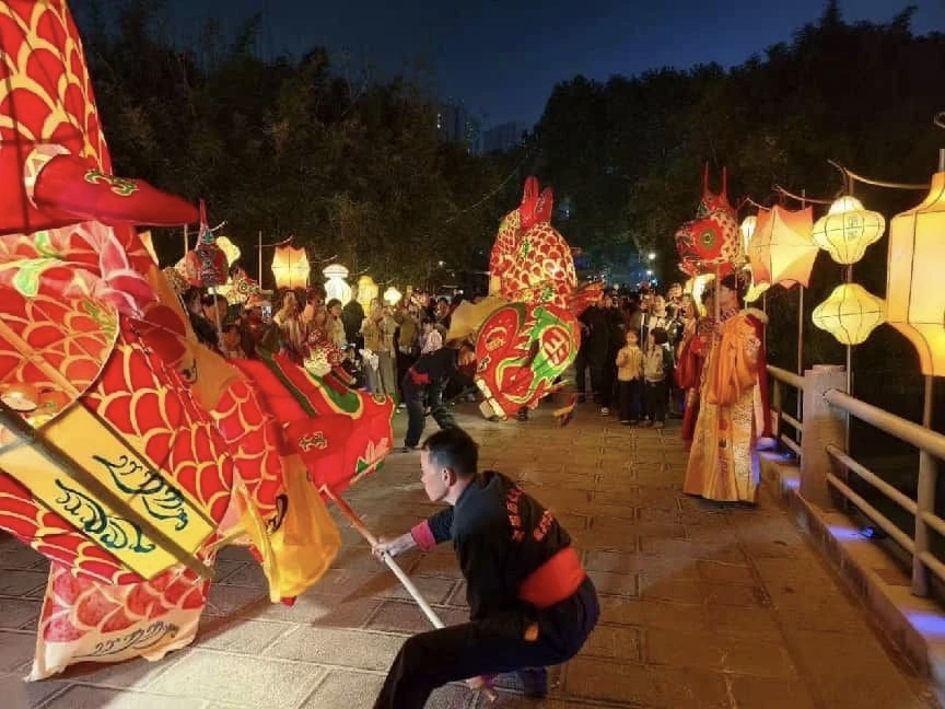 1月24日18:30—20:00,两场《鱼跃龙门》大型非遗鱼灯舞巡游将上演。数十名舞者手持彩绘鱼灯,于大成殿广场起势,踏着鼓点穿行于街巷之间,光影摇曳中尽显“鱼跃灯舞”的灵动之美。市民与游客可近距离观赏、互动合影,沉浸式感受这场光影与文化的盛宴。