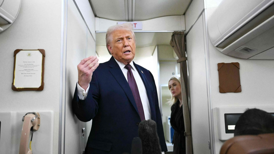1月22日,美国总统特朗普在总统专机“空军一号”上对媒体讲话,称美国正调集重兵前往伊朗,许多舰艇正在向伊朗行进。\n 新华社发