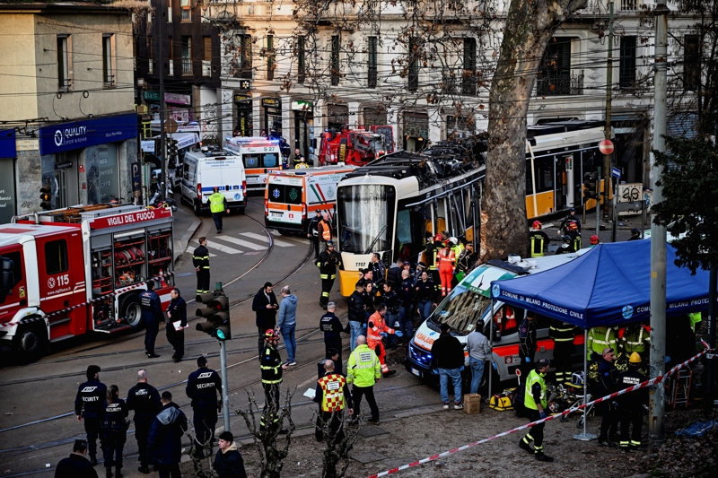2月27日,救急东谈主员贯注大利米兰的电车脱轨事故现场功课。意大利北部城市米兰2月27日下昼发生有轨电车脱轨事故,欺压现在已形成两东谈主升天,发扬的受伤东谈主数已高潮至49东谈主。\n 新华社/路透