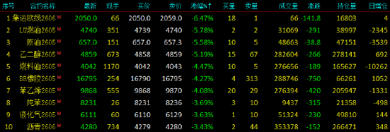 2026年4月2日,早盘开盘,国内期货主力合约跌多涨少,集运欧线跌超6%,低硫燃料油(LU)跌近6%,SC原油、乙二醇(EG)跌超5%,燃油、合成橡胶、苯乙烯(EB)跌超4%。涨幅方面,沪金涨超2%,沪锌、沪银涨超1%。