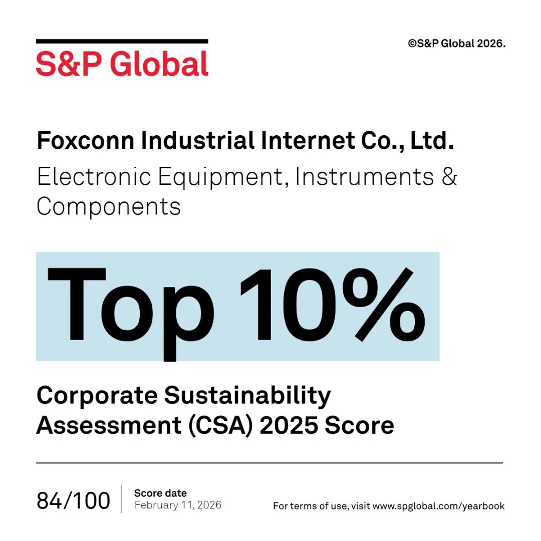 近日,海外泰斗机构标普内行(S&P Global)肃肃发布2026年度《可抓续发展年鉴》。凭借在环境、社会及公司搞定(ESG)方面的超卓发达,工业富联酌量第二年入选年鉴,并初次取得内行电子修复、仪器和元器件行业“TOP 10%”赏赐。